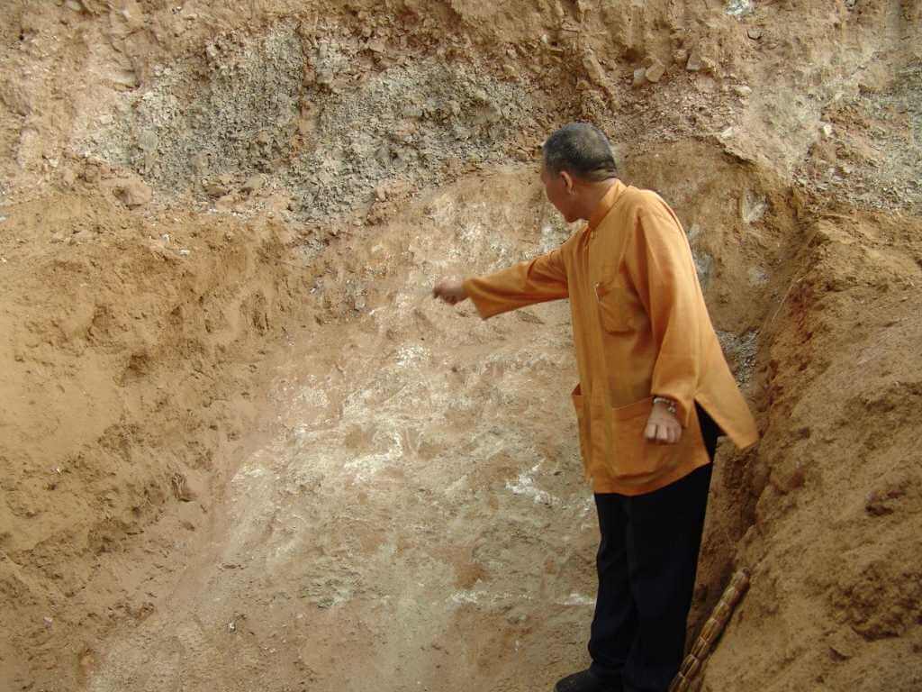 2004年6月22日蚩尤祠舉行奠基、開工儀式,在宗主 上混下元 禪師定分金後開挖穴位,在分金下地底五公尺斜切面出現陰陽兩色斜面。地面下挖到直徑兩公尺的「白龍穴」,當場在現場的眾人皆嘖嘖稱奇。更不可思議的是,穴中竟然出現古「蚩」字。任書記當時說了一段話:「 上混下元 禪師從臺灣到大陸,大陸土地那麼廣大,找到河北省涿鹿縣來,又找到礬山鎮的柳樹村,在這個地點手指著一點就能點到白龍穴,這比航太儀器還準, 上混下元 禪師真神啊!」。