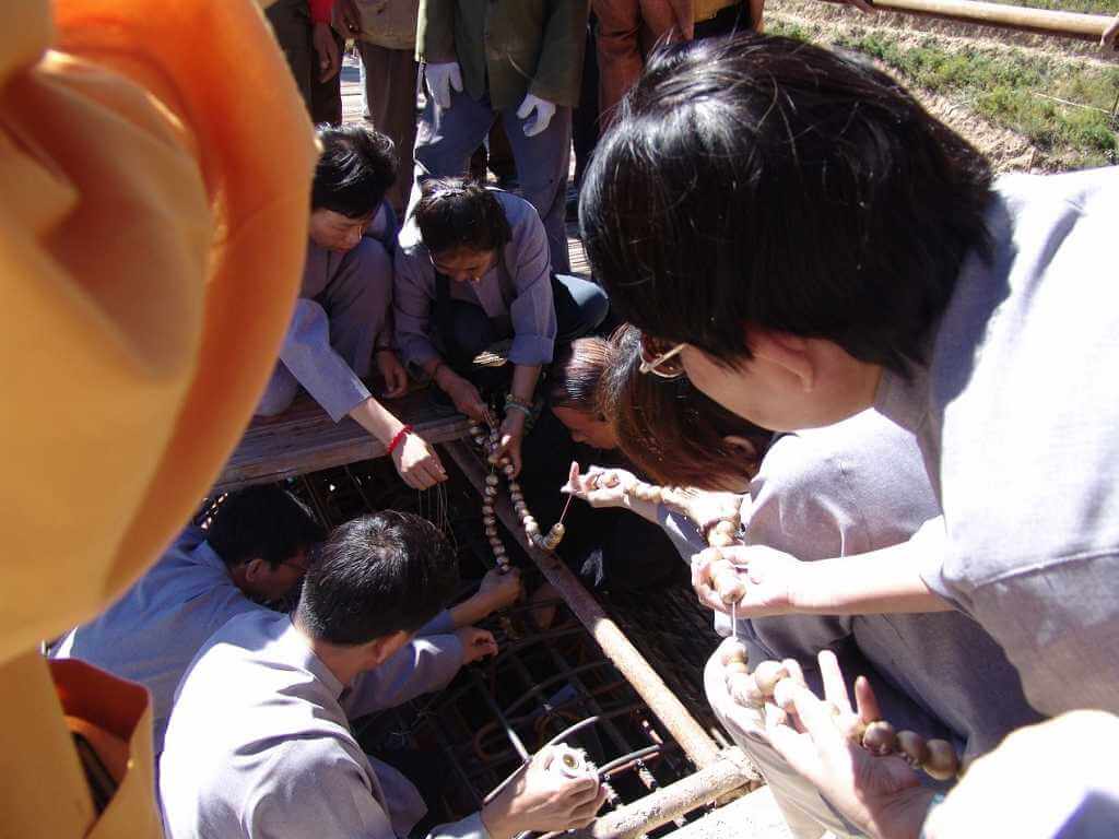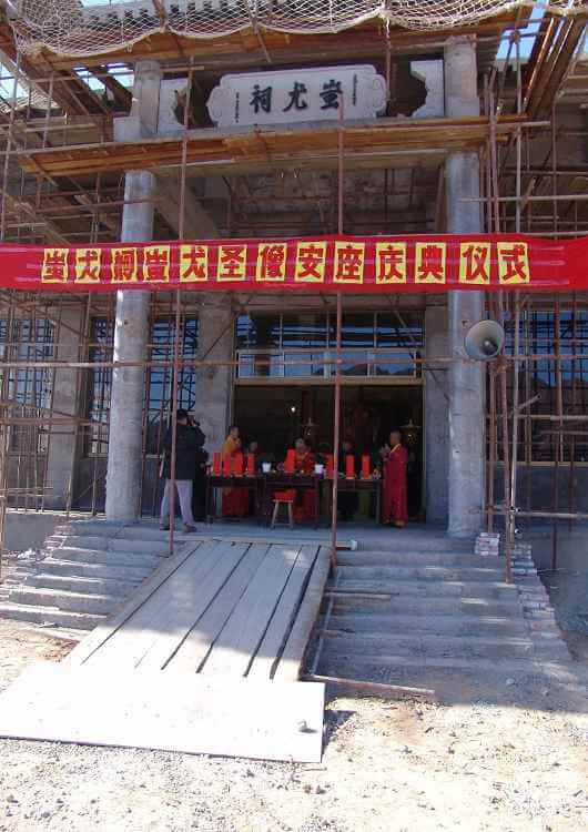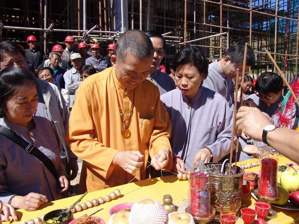 蚩尤祠上樑安座 元豐法師 曾文豐 2004年9月19日一大早由臺灣出發,一路風塵僕僕,跟隨宗主 上混下元 禪師由北京到涿鹿,已經是黃昏時刻了,當時在蚩尤祠附近上空出現「立極」橫樑的瑞象,好像示現著蚩尤祠上樑會順利圓滿。 9月20日上樑當天艷陽高照,大家佈置誦經壇城,宗主 上混下元 禪師交待同修用108顆白龍珠串成一直線放在供桌上,法師誦經供養法界祈求諸佛菩薩保佑上樑順利。誦經完,宗主 上混下元 禪師開始加持白龍珠串,108顆白龍珠串一直線由全體同修抬上屋頂放在樑柱上,完成既有歷史性殊勝的上樑儀式。 「立極」橫樑的瑞象 108顆白龍珠 白龍珠串成一直線 宗主 加持白龍珠串 全體同修抬上屋頂放在樑柱上 2004年10月22日蚩尤祠舉行隆重的蚩尤帝祖聖像安座大典,大陸各界人士及當地居民數百人到場參加,比較特別的是還有蚩尤帝的後代子孫貴州苗族代表及貴州民族學院李廷貴先生也來參加安座大典,宗主 上混下元 禪師並贈送蚩尤聖像給苗族代表。宗主 上混下元 禪師當下開示:「蚩尤帝聖像右手高舉向下安撫蚩尤後代子孫、中華三祖兒女,今後不再有戰爭,應該共享太平年。」 安座法儀結束後,宗主 上混下元 禪師開示﹕「弟子應效法蚩尤帝祖精神,修忍辱心,接下去除了陸續建設以外,我們大家本著蚩尤帝給我們的開示,凡事學習忍辱,凡事學習忍辱,事業的成功也是從忍辱開始,在世間的忍辱一時,我們可以保百年身,我們忍辱一時,我們的事業,也許有時候短暫的衝擊,我們會化為很大的力量,所以今天蚩尤帝祖,我們遵照老祖師尊,給我們的機會,給我們修行的機會,也給我們學習的機會,對我們總是一個好的開始」。 宗主 上混下元 禪師以宗教家之心懷,中華兒女血脈之軀,不惜跋涉千萬里,花費鉅資,跨海興建蚩尤祠ヽ黃帝殿、炎帝廟,務求中華三祖各歸本心,中華兒女皆得護佑,尋根溯源皆有皈依;從此心手相連,互敬互愛,世界和平亦指日可待。 蚩尤祠的規劃是依山形設計而成的,仿唐式建築三綱五常人文倫理均內涵其中;蚩尤先祖聖像端座龍位上,受納後代子孫祭拜供養,揚起的手勢彷彿在安撫眾生不安的靈魂;五千年來的分裂與爭戰,謬誤與偏見至此應該劃下句點。 分 享